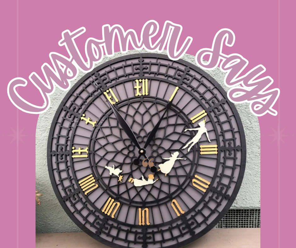 Our Peter Pan ClockThis item is perfect and looks sooo great on my wall!!! Obsessed with it!